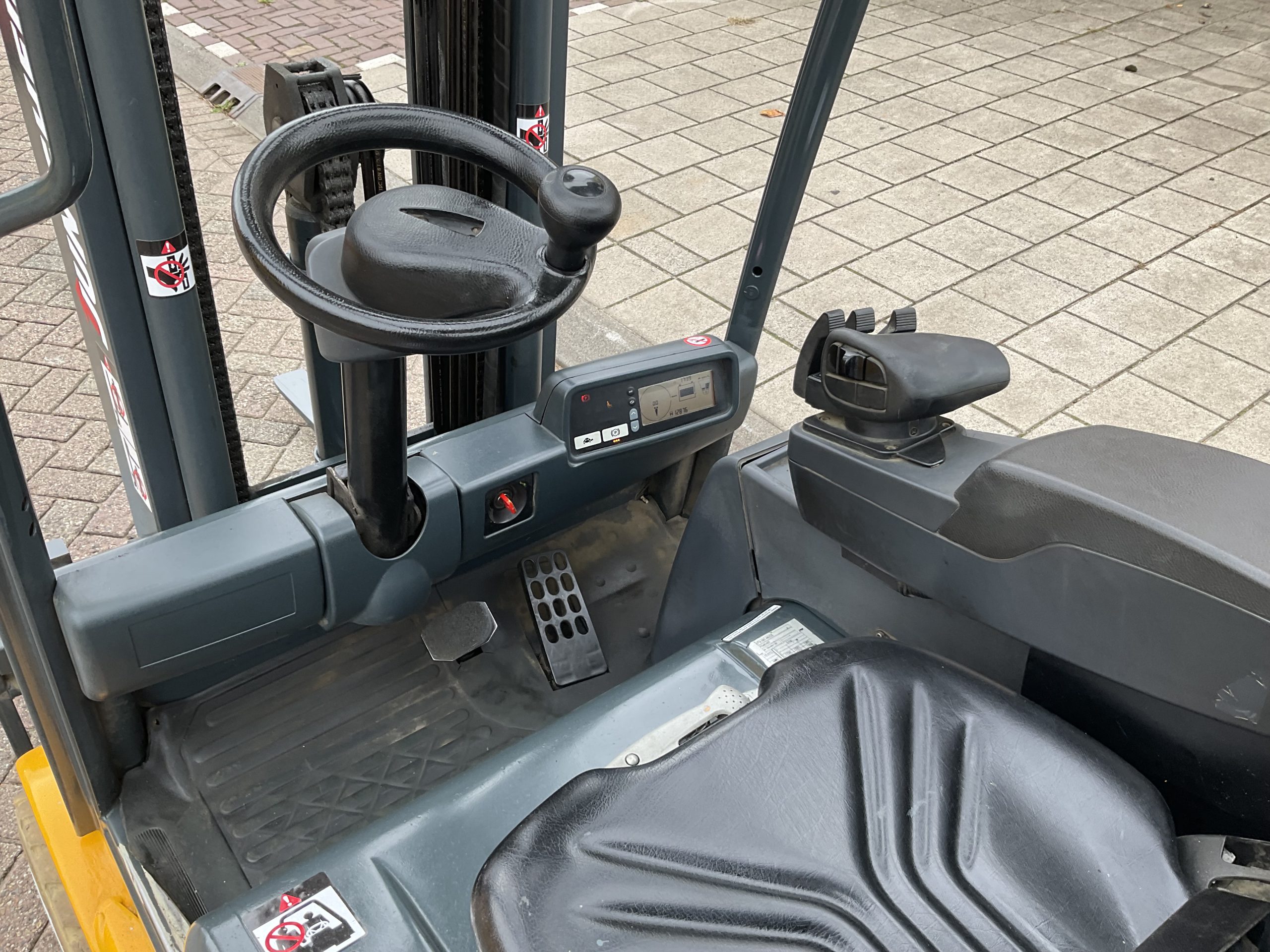 – 3-delige mast met free-lift en side-shift.