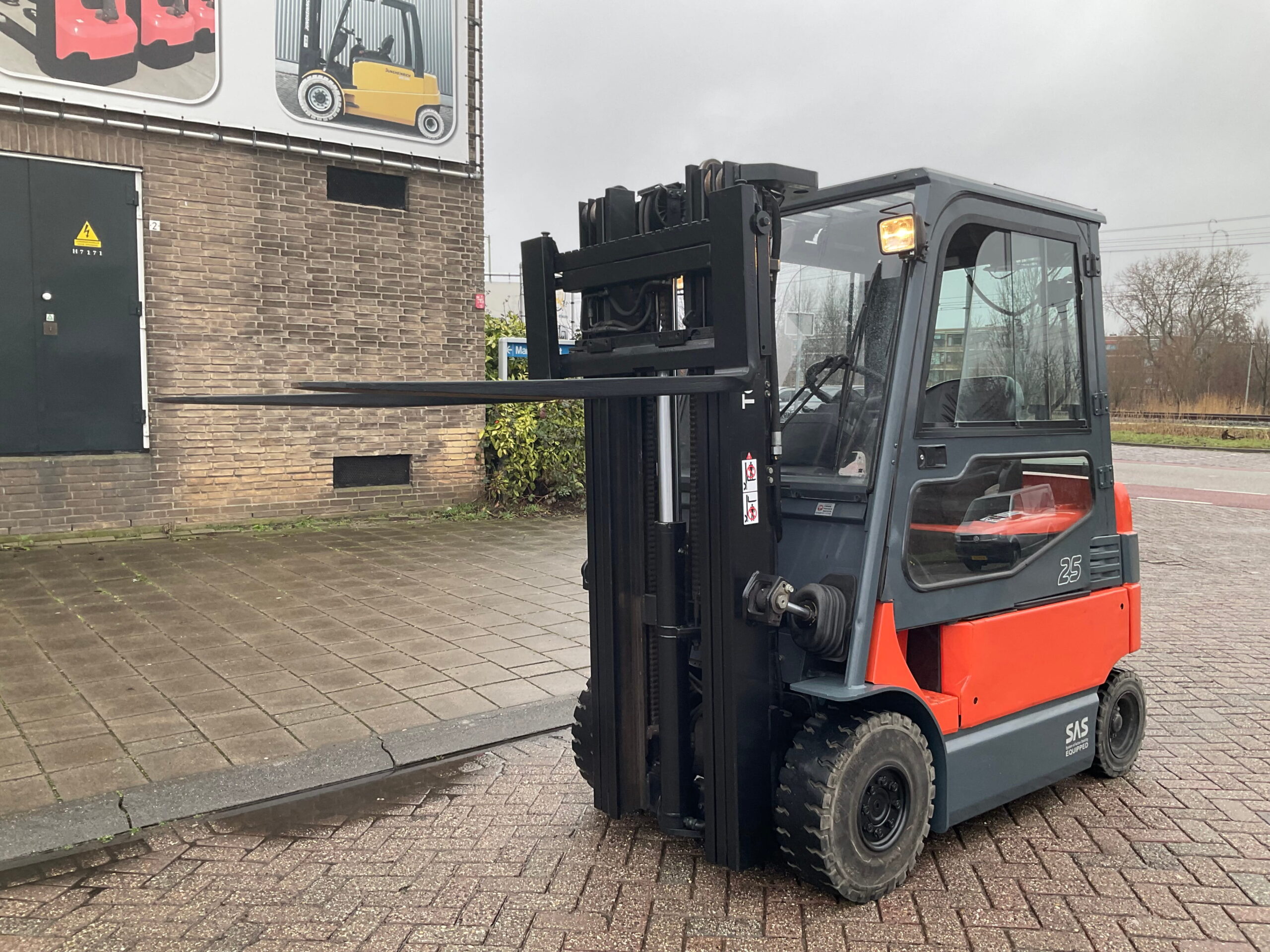 – 3-delige mast met free-lift en side-shift.