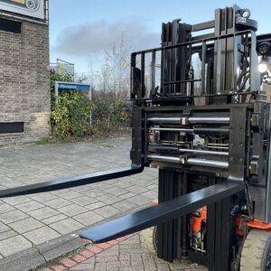 – 3-delige mast met free-lift, side-shift en vorkenversteller.